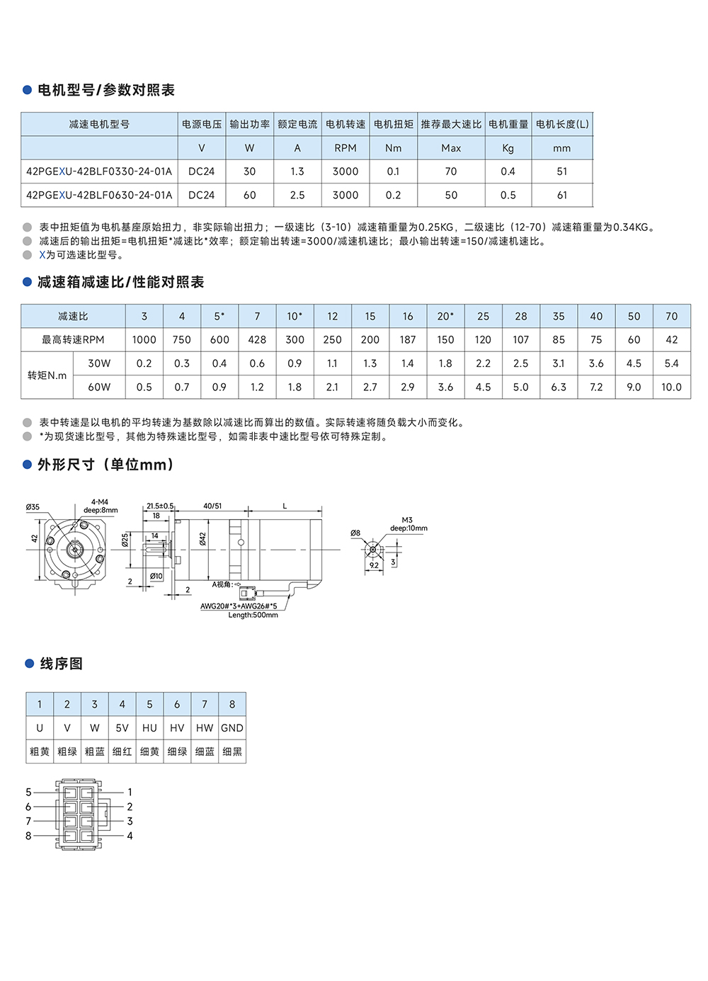 行星无刷减速电机42法兰30W/60W